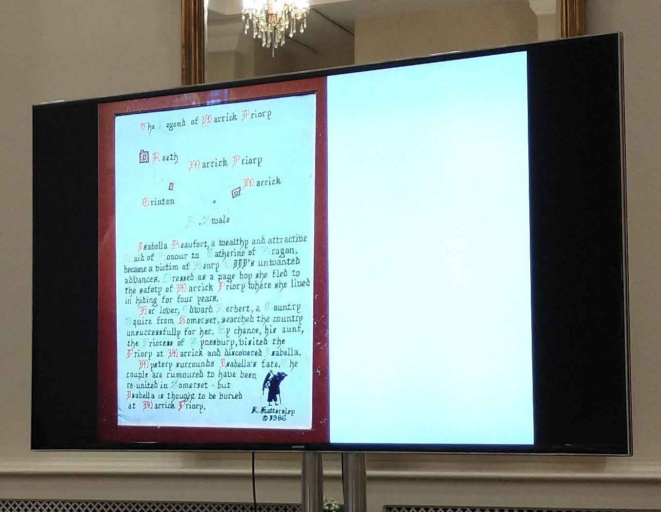 Sandi Carter was introduced and delivered an interesting talk, illustrated by PowerPoint, about the history of Marrick Priory and its current role as an outdoor education centre.