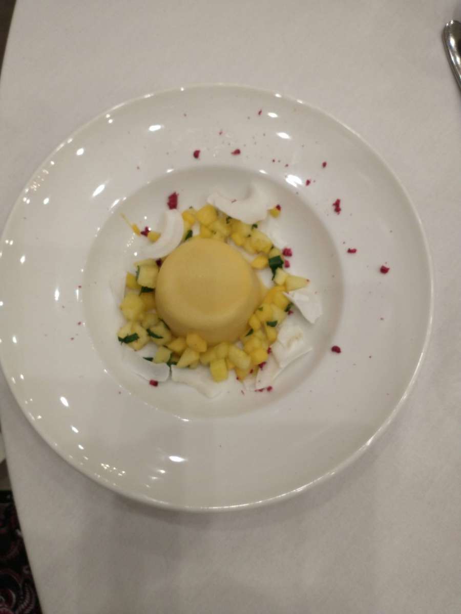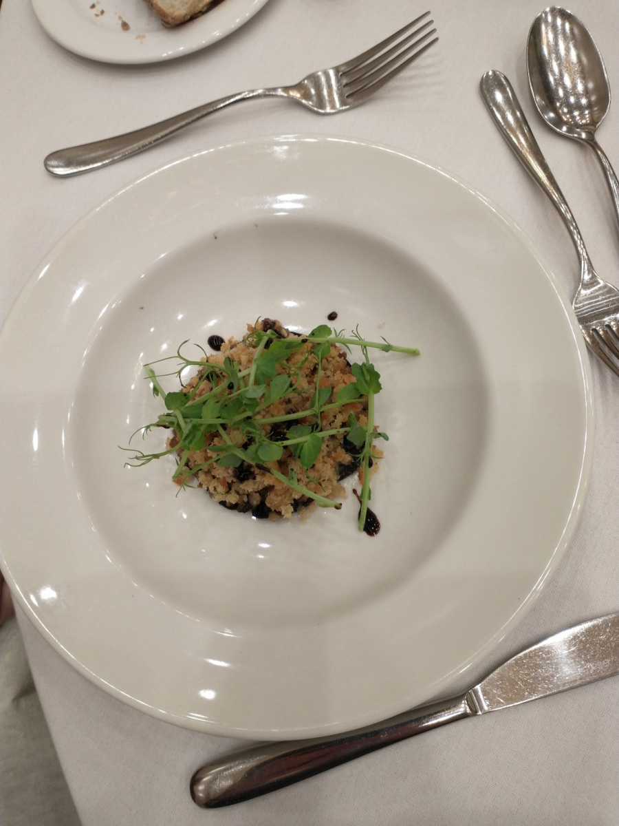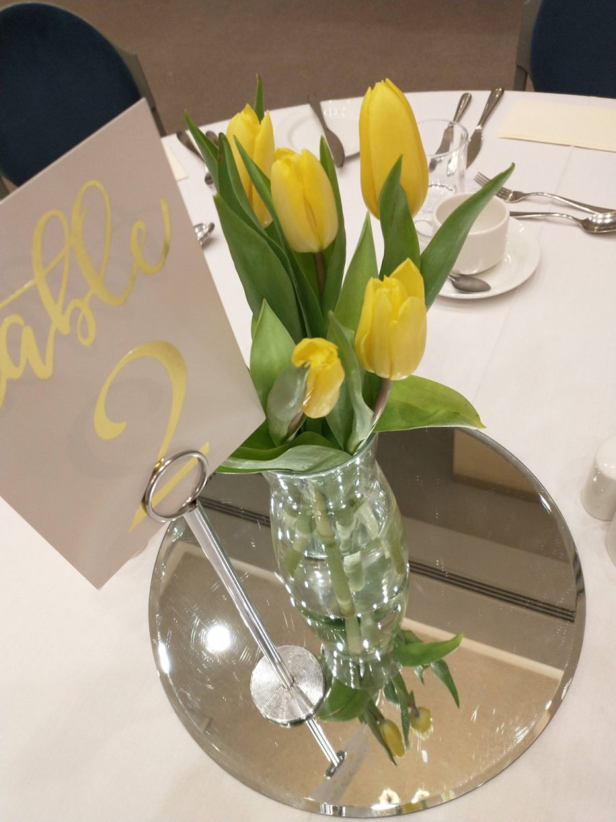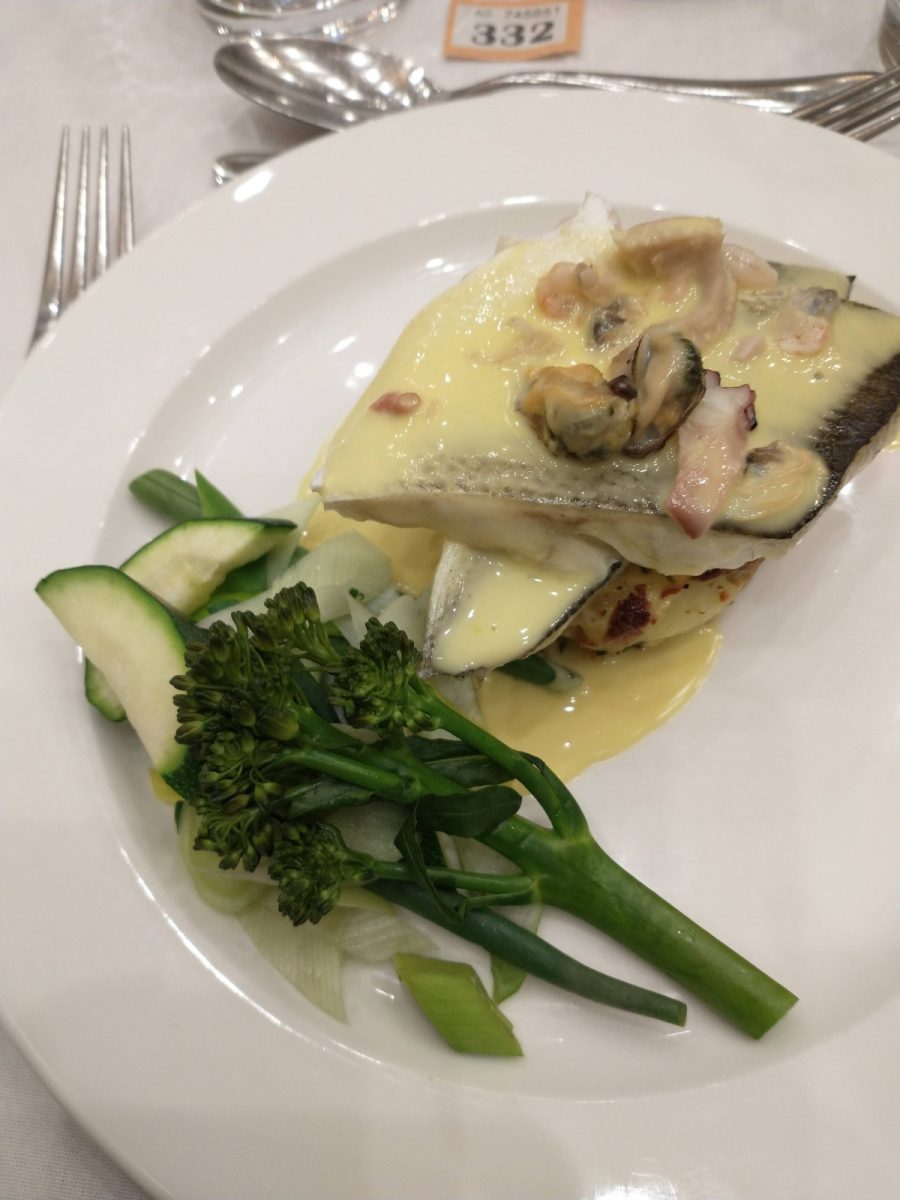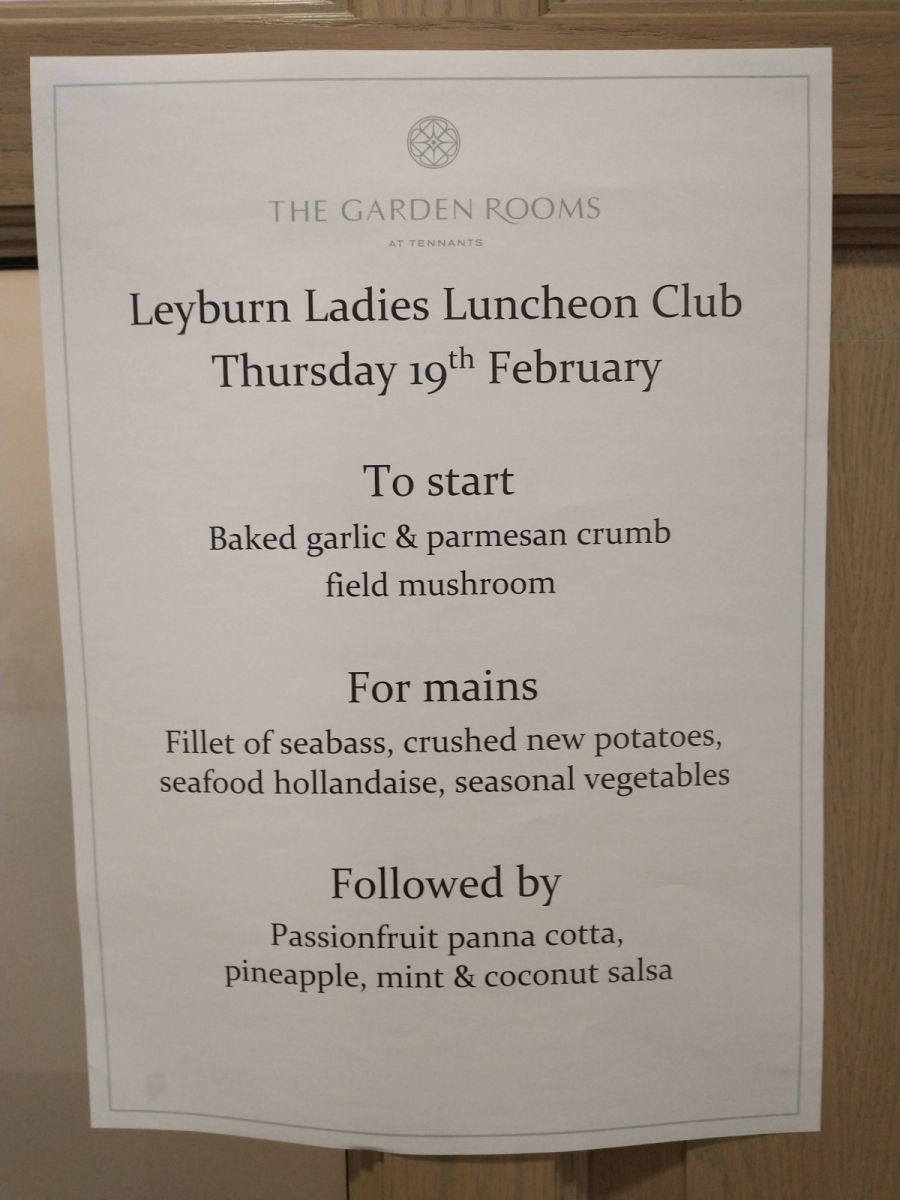 Ladies enjoyed a delicious lunch starting with cream of broccoli soup with homemade focaccia croutons, followed by cod fillet with crushed new potatoes, chorizo, salsa verde and seasonal vegetables. Dessert was a dark chocolate delice served with Yorkshire poached rhubarb and chocolate orange crumb. Coffee or tea and after dinner mint concluded the meal.